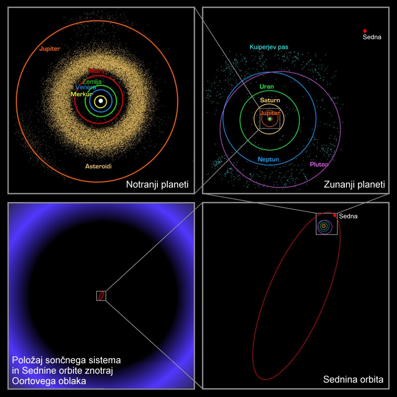 Sedna se nahaja v prostoru med robom Kuiperjevega pasu in