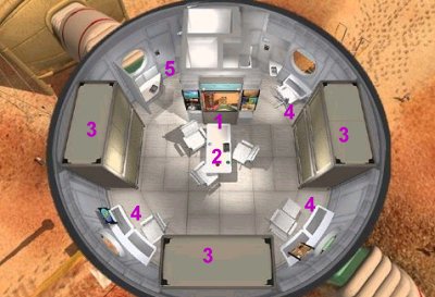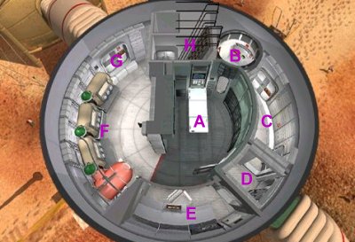 povezan preko gibljive cevi neposredno na spodnjo etažo habitata. Na