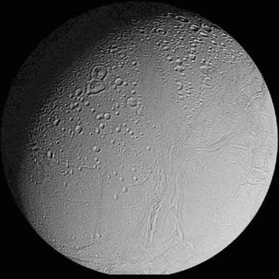 ledu. Vodeča in sledeča polobla sta izredno različni. Albedo prednje