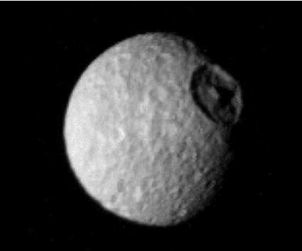 tudi zato, ker se ne vrti sinhrono kot ostali Saturnovi sateliti.