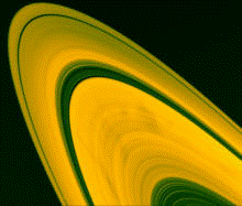 Shematski prikaz Saturnovega obroča. Z Zemlje so vidni samo